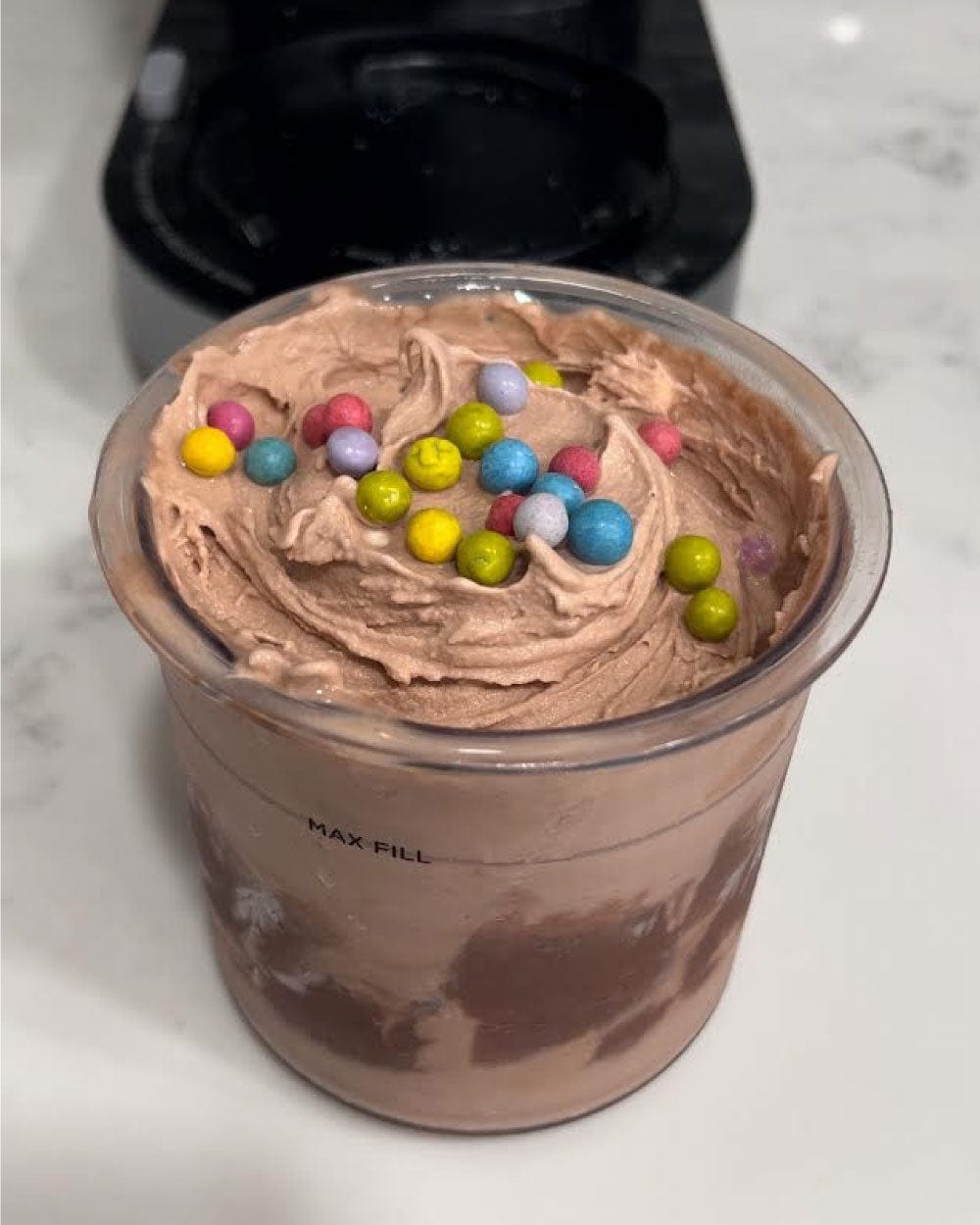 - Top with your toppings of choice and your protein ice cream!