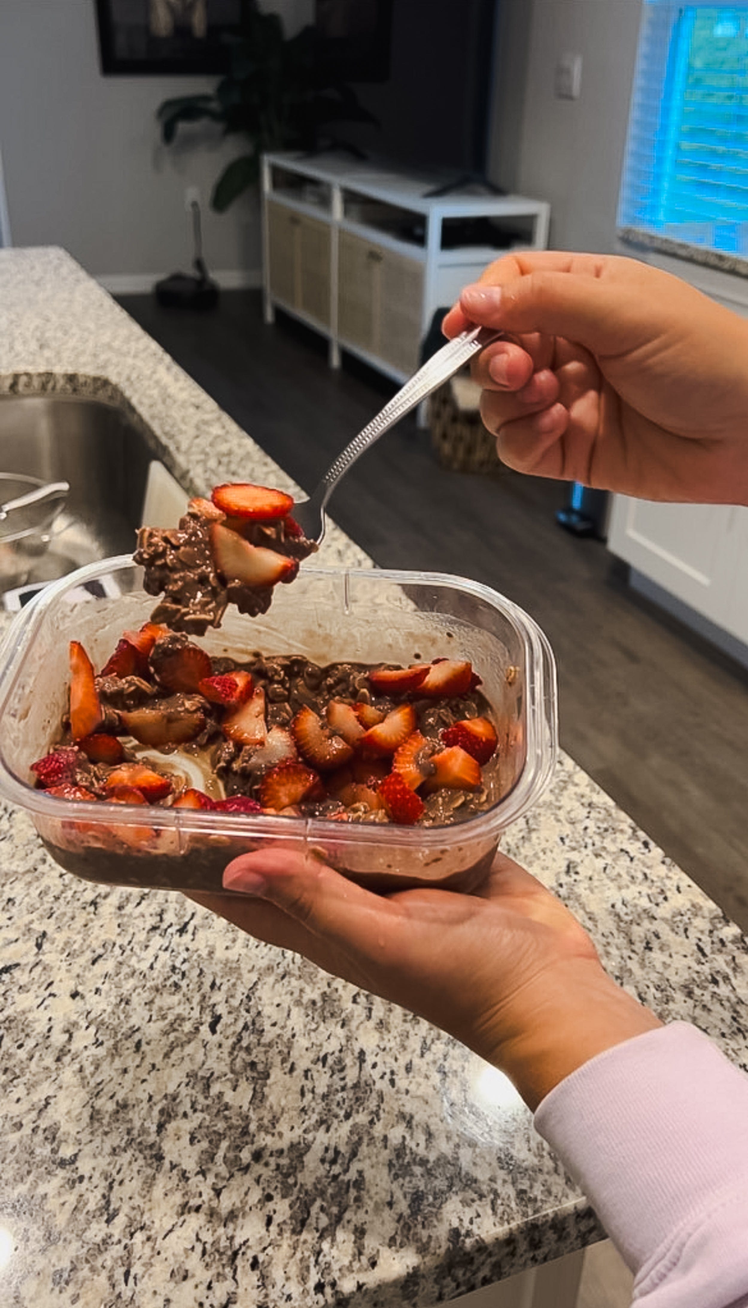 - Top with fresh fruit, peanut butter, granola, etc, and ENJOY!