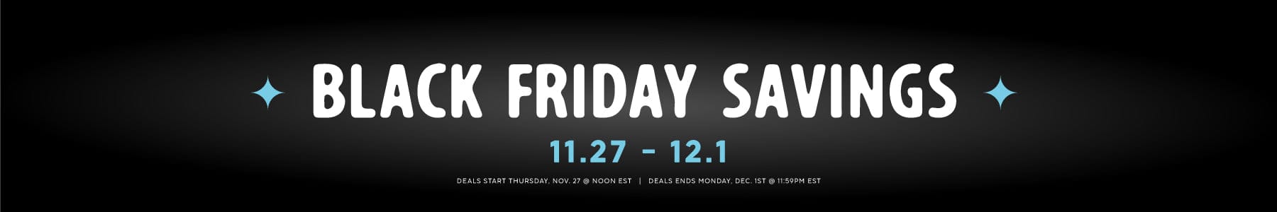 Our sale starts Thursday at 12:00 PM Eastern Time and runs through 11:59 PM Eastern Time on Cyber Monday (Dec 1).